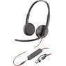 Poly Auriculares Poly Blackwire 3220 Cableado Sobre la oreja Estéreo - Negro - Binaural - Cerrado - 32Ohm - 158.5cm Cable - Omnidireccional Micrófono - Cancelación de ruido - USB Tipo C, Mini-phone (3.5mm)